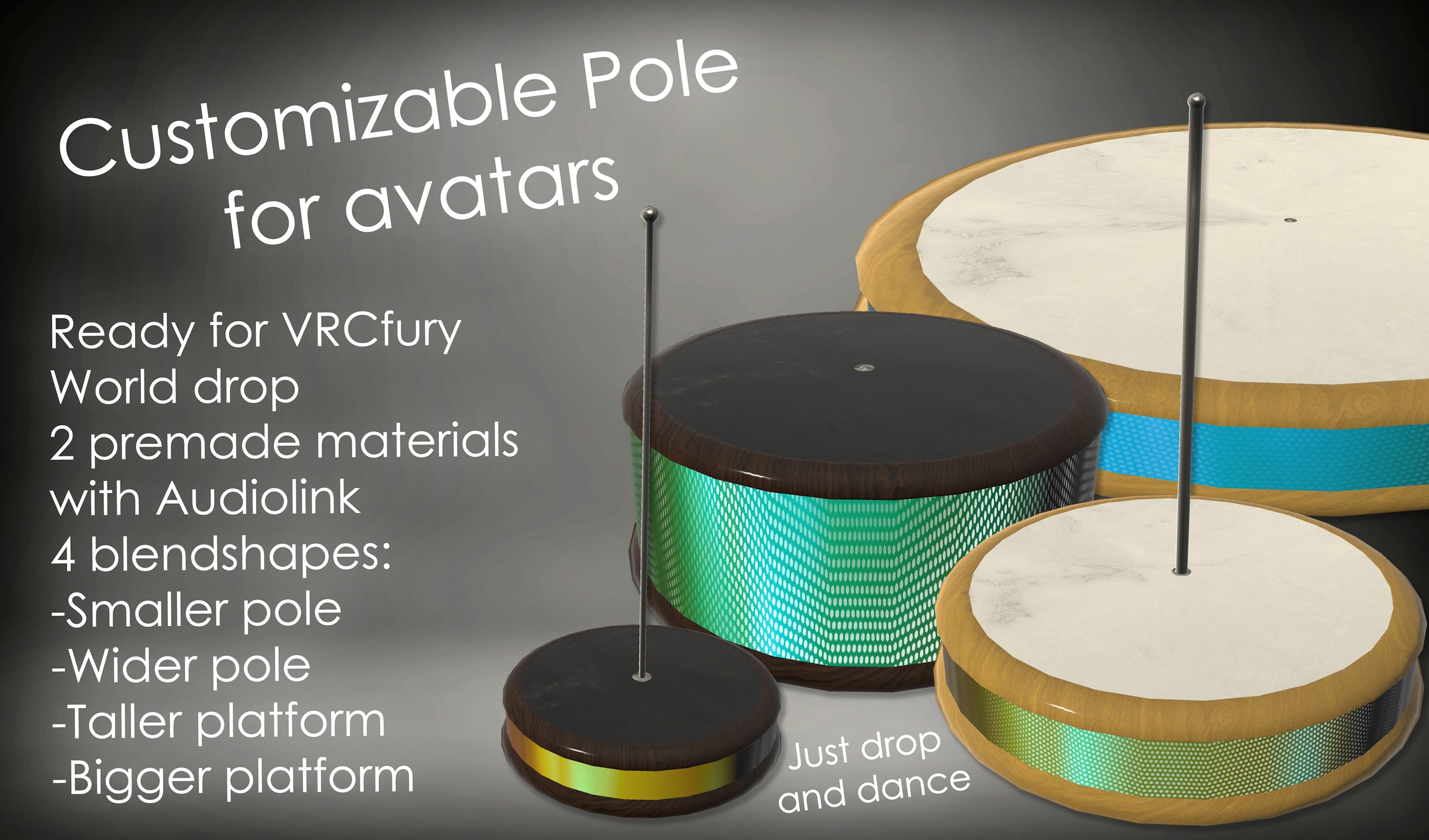 Pole for poledance with Audiolink ready for VRCfury. Just drag and drop the prefab into the hierarchy and upload. Drop in the world and dance!